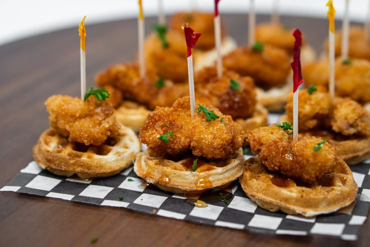 thai chili chicken, teriyaki beef, & caprese mini skewers (3 per serving)